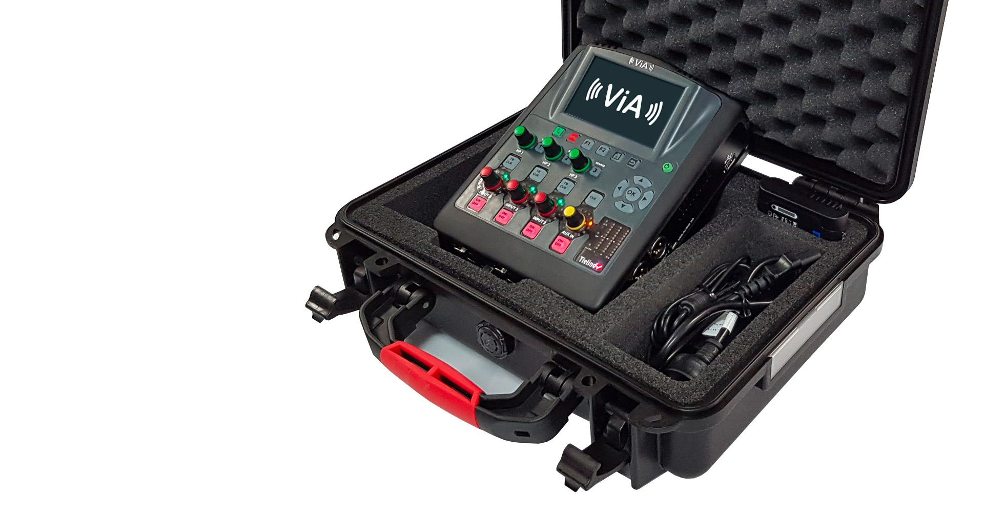 Kit comprenant un microphone et des accessoires. L'ensemble comprend : KMIT bleu avec dégradé vers le gris Nextel, CMD 42, SG 20, W 140 bleu, étui Premium pour CMIT