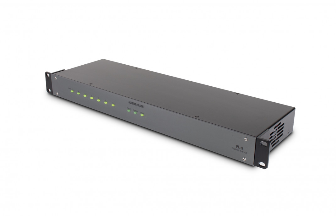 Le PL-9 est un hub en rack 1U ou à monter sur un bureau qui fournit jusqu'à 7 connexions individuelles à des chaînes de dispositifs PL, offrant un câblage en étoile, simplifiant le câblage et éliminant le besoin d'un chaînage complexe en guirlande. Cela permet également d'allonger les câbles et de faciliter le " plug and play " d'appareils tels que le PL-6 et le PL-10, et de connecter un plus grand nombre de contrôleurs PL à une seule unité iDR. Comme le PL-9 est le " bout de la chaîne " d'une branche PL-Anet, il offre une plus grande flexibilité en permettant aux plaques murales PL d'être branchées et débranchées facilement - par exemple, un PL-6 pourrait simplement être branché dans un PL-9 sur scène, permettant le contrôle local de l'artiste, puis retiré après l'événement.