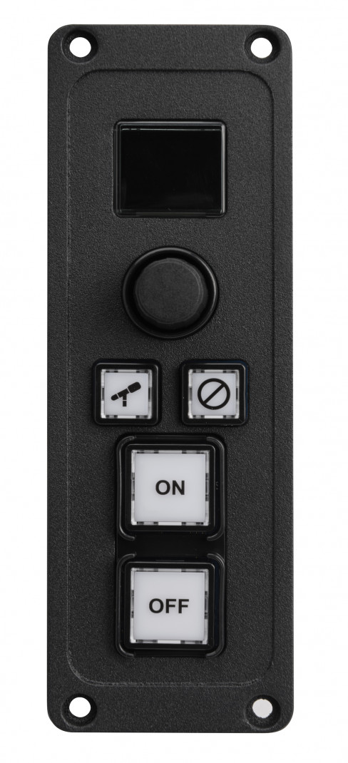 Le panneau d'accessoires en studio se monte sur une table ou une tourelle. Il permet de commander à distance les fonctions de mise en marche et d'arrêt du micro ; des boutons dédiés Mute et Talkback permettent aux artistes de contrôler totalement leur position. Le bouton de volume/sélection permet à l'utilisateur de sélectionner la source d'écoute de son casque ; l'affichage confirme son choix. Se connecte à la carte d'interface Fusion CANbus à l'aide d'un câble CAT-5. 6 "x 2", nécessite une profondeur de montage de 2".