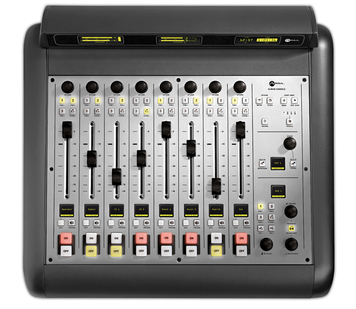 Le système de console radio Axia® iQ peut être utilisé pour construire des consoles personnalisées de 8 à 24 faders. Un système de base se compose d'un châssis principal iQ à 8 faders et d'un moteur de console intégré QOR.32, d'un moteur de mixage basé sur le DSP qui intègre également des E/S audio analogiques et numériques, du GPIO et un commutateur Ethernet personnalisé à configuration zéro. Les faders et les capacités de contrôle peuvent être étendus en ajoutant un ou plusieurs cadres d'extension iQ (jusqu'à un maximum de 3 cadres par installation de console). Les cadres de console iQ peuvent être placés sur la surface d'un bureau ou être montés de manière à pouvoir être déposés. Plusieurs cadres peuvent être physiquement joints si nécessaire.iQ fonctionne comme une console autonome, mais peut également se connecter aux réseaux Axia. La surface de mixage iQ se branche sur le moteur QOR.32 à l'aide d'un seul câble. La configuration ne pourrait pas être plus simple : connectez la surface de contrôle iQ au moteur QOR.32, ajoutez des entrées audio à l'aide de CAT-5, effectuez une configuration rapide basée sur le Web, et votre système iQ est prêt à diffuser. C'est vraiment aussi simple que cela !