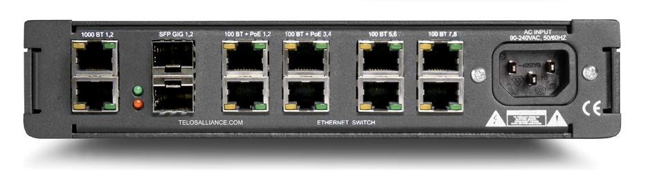 MATERIEL DE DEMO, ETAT NEUF, GARANTIE 1 MOIS - Livewire xSwitch avec 10 ports (4 x 100 Base-T, 4 x 100 Base-T POE, 2 x GB 1000 Base-T, 2 x SFP. Adapté aux besoins des utilisateurs de Livewire IP-Audio, prêt à l'emploi, configuration par un seul bouton