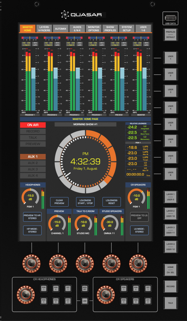 La gestion des DPS (filtre, gate, eq, compresseur, limiter, des shows, des I/O et plus encore et entièrement réalisée depuis ce module. Les vues sont contextuelles en fonction des désires de l'utilisateur (I/O, routage, phone, insert etc.)