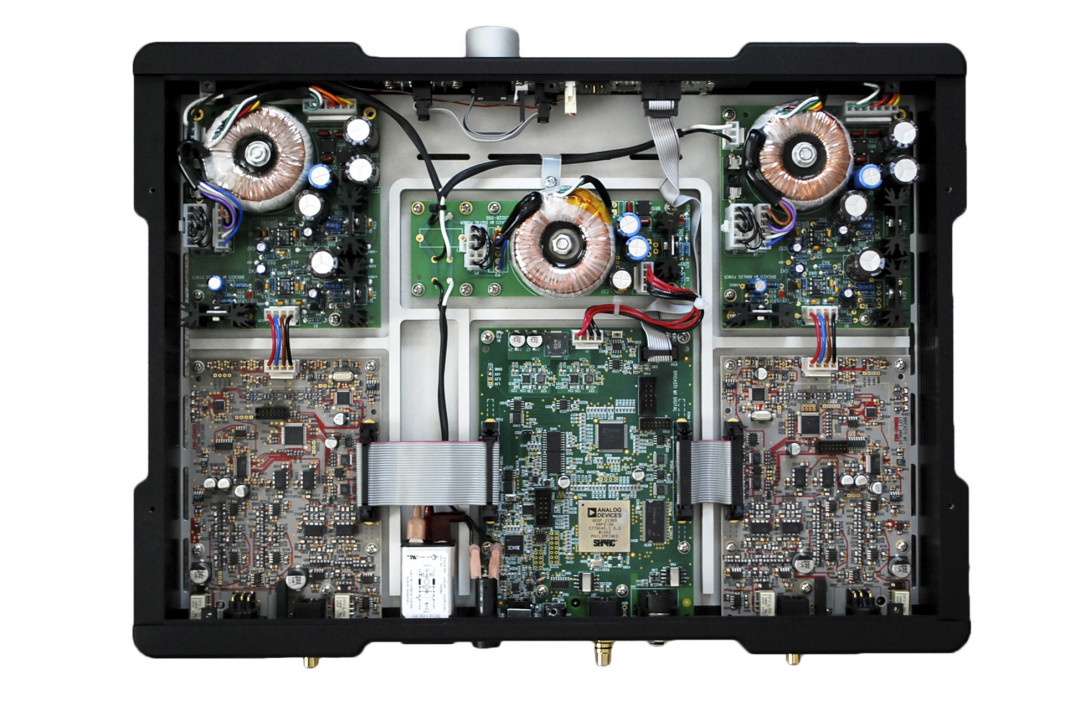 Le convertisseur numérique-analogique M1 est un modèle double mono ; il y a deux canaux complètement isolés, chacun avec sa propre alimentation linéaire, son convertisseur N/A, son horloge DDS et ses circuits analogiques. Cette conception garantit que la diaphonie analogique est pratiquement inexistante, que les besoins en énergie de chaque canal sont bien satisfaits et isolés l'un de l'autre, et que le traitement numérique est isolé et dispose de sa propre alimentation. Grâce à notre conception DAC double, la plage dynamique de chaque canal est optimisée par l'utilisation du convertisseur D/A stéréo ADI 1955 dans une configuration mono. Le M1 comprend également la technologie de filtrage propre à Bricasti, ce qui ouvre de nouvelles perspectives pour les références D/A modernes.Option de lecteur réseau