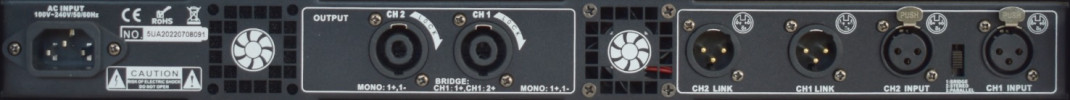 1HE Amplificateur de puissance 2x500/300W @4/8 Ohms, bridgeable