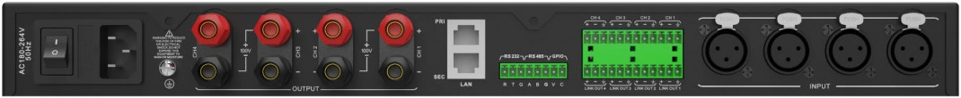 - Connecteur d'entrée : 4x XLR + 4x phoenix