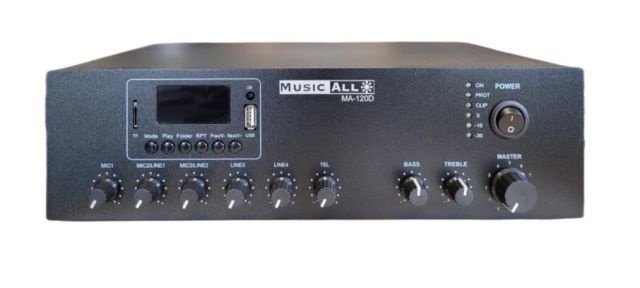 Amplificateur de mixage 120W @100V / 4-16Ω avec lecteur multimédia, Bluetooth, FM, DAB