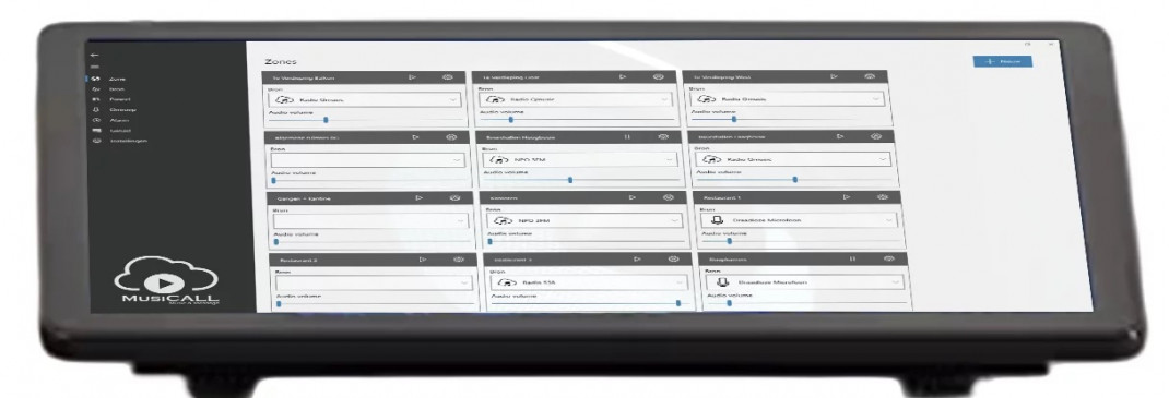 Le serveur de musique et de messages MusiCall de la série MDM-T est une version de bureau avec un écran tactile de 10,1″. Il peut être utilisé comme unité centrale de contrôle et/ou console d'annonce lorsqu'il est associé à un microphone comme le MDM-MIC.