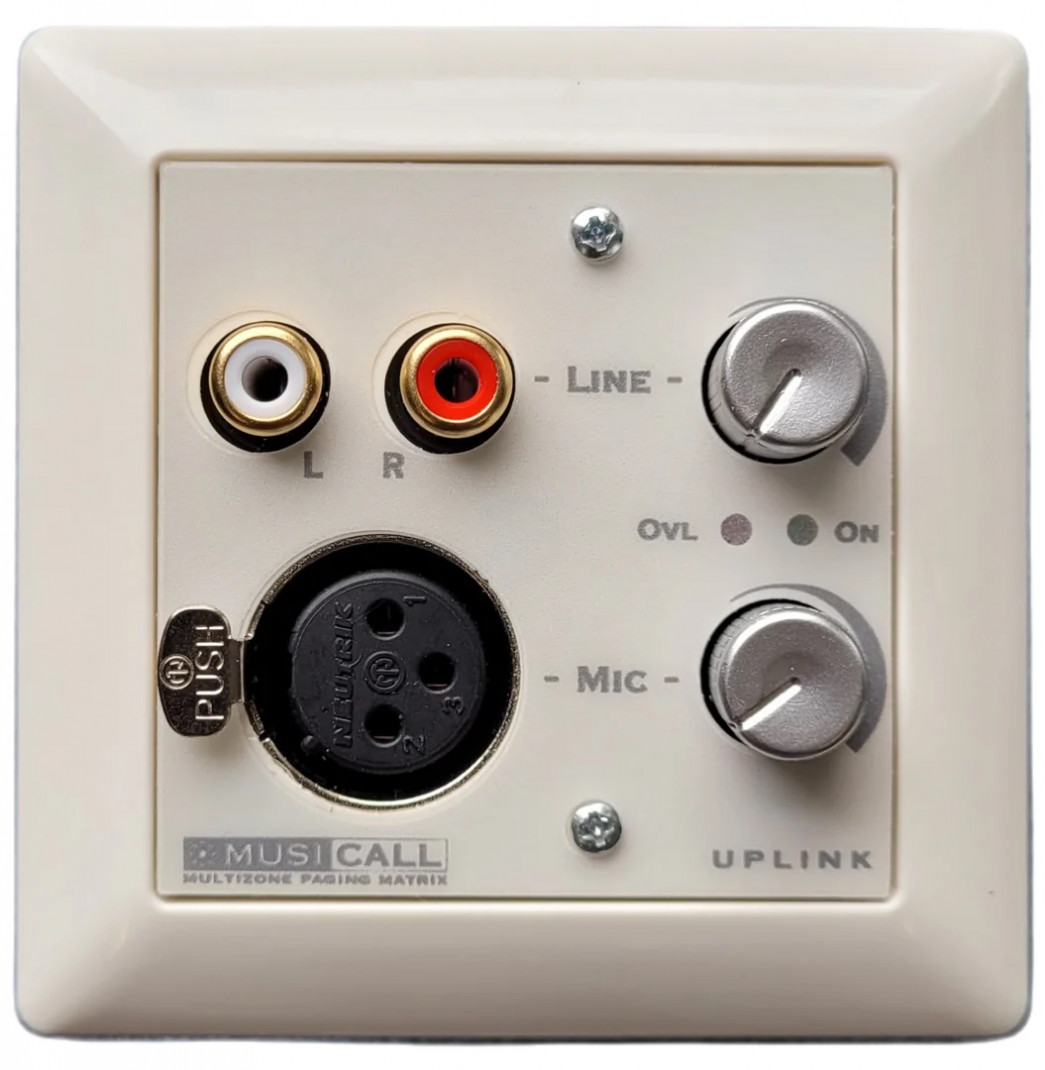 Double entrée audio mono pour signaux Mic et Line avec commandes de mixage. Compatible avec les matrices Musicall ou le mélangeur TRI-O. Couleur blanche, insert 55x55mm. Connexion par câble blindé