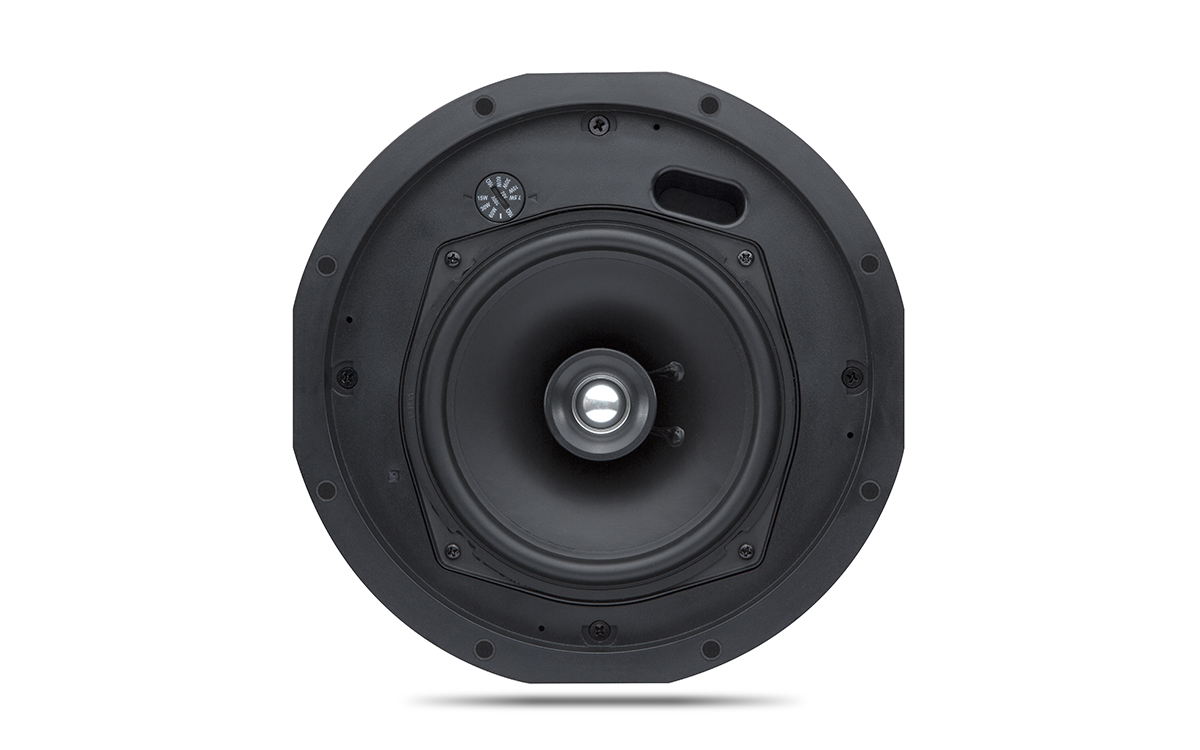 Haut-parleur pour plafond 2 voies, 6.5" + 0.75", 60W RMS, Impédance 16Ω, compatible 100V (60 - 30 - 15 - 7.5 W), Diamètre de coupe 222mm, Hauteur dans le plafond 173mm, avec dôme métallique, blanc