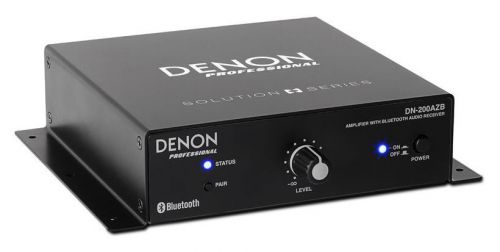La série Solution de Denon Professional est conçue pour être le meilleur ami des entrepreneurs audio. Sa spécialité est de résoudre les problèmes audio facilement et à peu de frais en acheminant le signal vers un endroit qui serait autrement difficile ou peu pratique. Simples à installer, à configurer et à utiliser, les produits Solution Series font partie de la boîte à outils de tout installateur audio.Le DN-200AZB est un récepteur audio Bluetooth® compact avec un amplificateur de classe D intégré de 20W RMS, 4 ohms, 70/100V. Il vous permet d'ajouter un amplificateur avec réception audio Bluetooth stéréo sans fil à tout système audio professionnel. Une fois que vous avez couplé votre appareil Bluetooth au DN-200AZB, vous pouvez envoyer le signal audio de votre appareil à vos haut-parleurs, alimentés par le DN-200AZB.