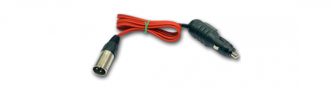 Câble d'alimentation XLR pour Radio Explorer 2 avec prise allume-cigare mâle. La prise allume-cigare est équipée d'un interrupteur marche/arrêt et d'un indicateur LED. La longueur totale du câble est de 2 mètres pour une polyvalence maximale.