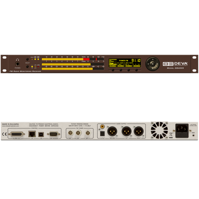 Le DB4005 est la troisième génération d'analyseur et de récepteur de modulation numérique de radio FM de DEVA Broadcast. Il est le résultat de longues années d'expérience et de la volonté de toujours fournir des solutions intelligentes quasi-parfaites, tout en suivant les toutes dernières évolutions et tendances technologiques.Avec ce produit, après démodulation du signal FM, le signal RF est numérisé par le tuner FM SDR et tout le traitement du signal est réalisé par des algorithmes DSP sophistiqués. La haute précision des puissants filtres numériques utilisés dans cet équipement permet d'analyser le signal FM avec précision et de manière répétée avec chaque appareil. Un atout important du DB4005 est l'entrée MPX, qui permet de contrôler les signaux composites externes, qu'ils proviennent d'un récepteur STL composite/encodeur FM stéréo, ou d'une source hors antenne. Comme il s'agit d'un outil de grande puissance de traitement, il fournit des relevés détaillés de toutes les composantes du signal FM multiplexé, tandis que toutes les mesures sont rafraîchies simultanément et de manière synchrone.