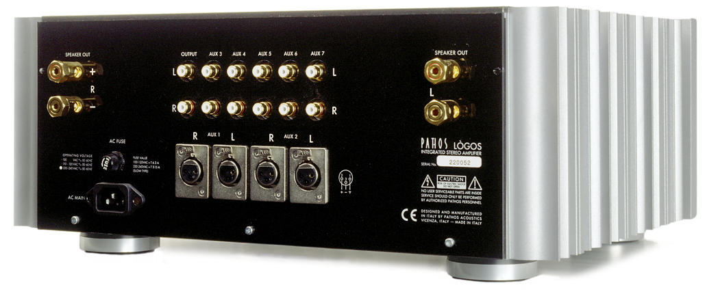 Logos est un amplificateur hybride de 110W par canal en 8 ohms et 220W en 4 ohms avec préamplificateurs à valves ECC88, étage terminal Mosfet classe A/B fortement polarisé, signal entièrement symétrique jusqu'à la valve qui permet de profiter pleinement d'une source symétrique comme Pathos Digit et Pathos Endorphin, contrôle de volume purement résistif avec circuit analogique à contrôle numérique et impédance d'entrée et de sortie constante, transformateur lamellaire en résine et encapsulé pour zéro dispersions, luminosité de l'afficheur réglable et toutes les fonctions télécommandées.