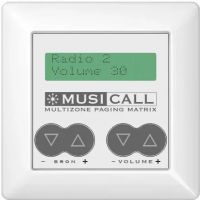 Télécommande murale avec écran LCD pour la sélection des canaux et du volume. A fixer au mur, technologie 2 fils. 55x55mm, blanc