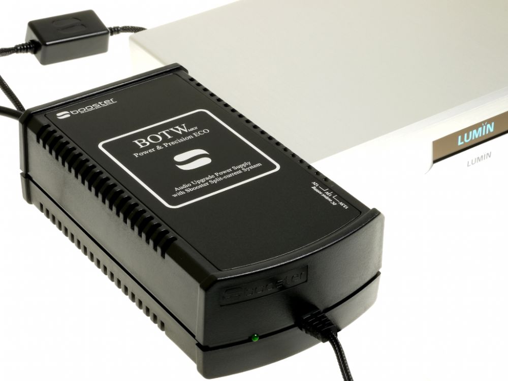 A l'extrémité du câble DC se trouve le système unique de split-current de SBOOSTER. La partie alimentation du BOTW P&P ECO fournit au système split-current une alimentation continue, puissante et propre, afin que l'électronique puisse faire son travail en profondeur : 1) tamponner la puissance, afin que l'alimentation devienne rapide, et 2) filtrer une dernière fois la tension et le courant avant qu'ils ne pénètrent dans l'appareil audio.