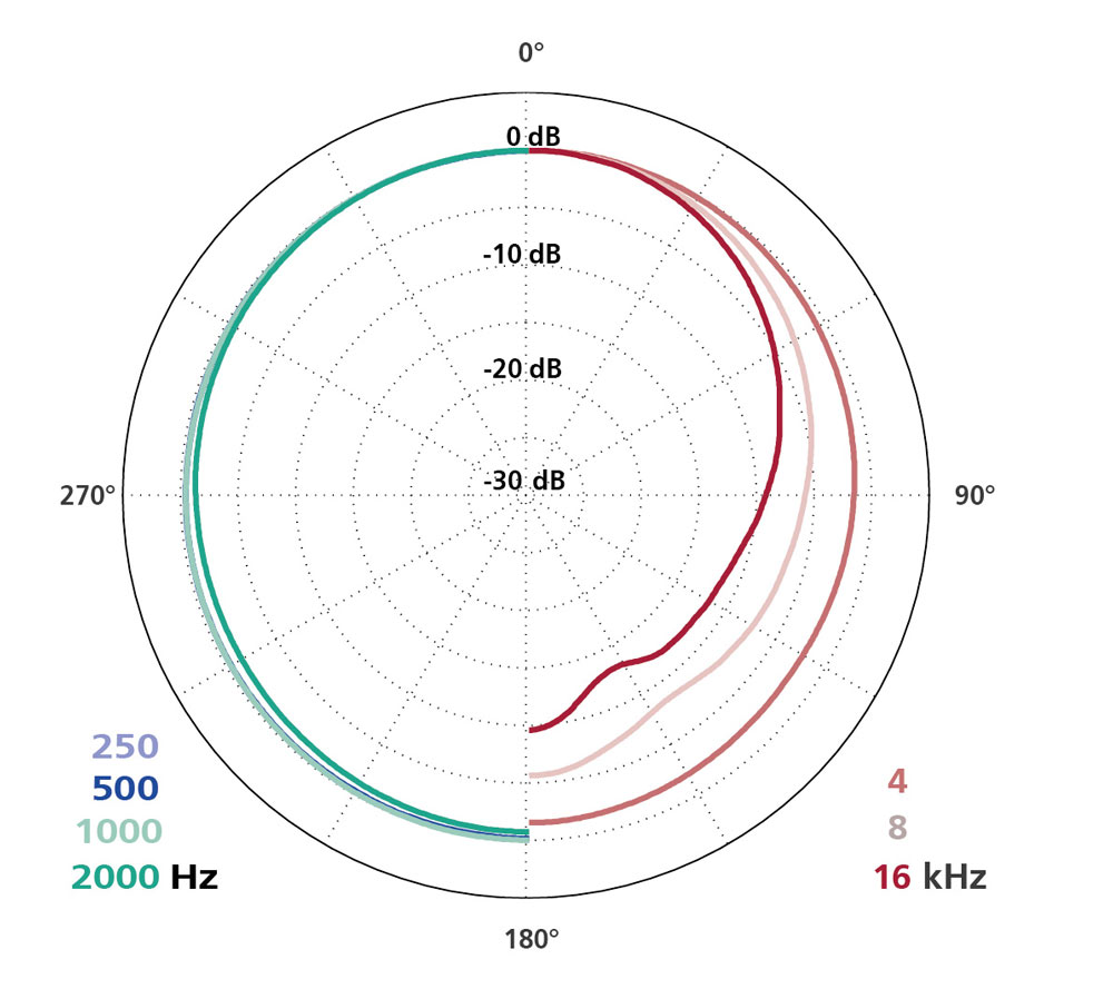 APPLICATIONCe type de capsule peut et doit être utilisé très près de la source sonore. L'image sonore n'est alors jamais surbrillante ou tranchante. Il faut veiller à ce que l'axe du microphone soit orienté vers la source sonore, car une incidence latérale entraînerait une perte de hauteur.