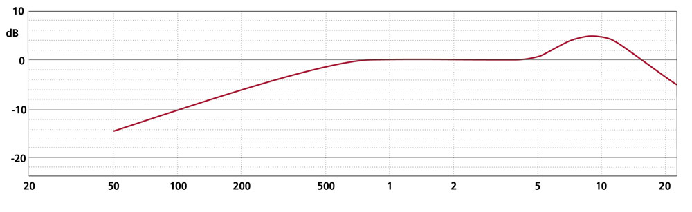 Cette capsule cardioïde est conçue pour l'entretien à faible distance, c'est-à-dire juste devant la bouche de l'orateur.Sa chute dans les graves est compensée par la proximité (effet de proximité). Elle possède donc une réponse en fréquence constante pour l'orateur - à l'exception de l'accentuation des aigus - alors qu'elle présente une réponse en fréquence avec une chute des graves pour le bruit incident provenant d'une plus grande distance. Ainsi, les bruits de fond sont transmis de manière affaiblie par rapport à l'orateur.
