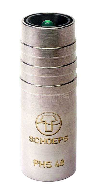 Le PHS 48 est utilisé pour tester si une entrée microphone avec alimentation fantôme 48V est capable de fournir les 4mA par canal de courant requis pour les microphones SCHOEPS. Selon la norme DIN EN 61938 Juillet 97, précédemment CEI 268-15 et DIN 45 596 - une alimentation fantôme 48V doit pouvoir fournir 10mA par canal.