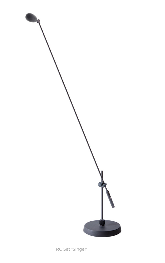 Le RC Set "Singer" est parfaitement adapté à l'utilisation comme microphone d'appoint/soliste pour un chanteur ou un orateur.Ce set est connu dans le monde entier sous le nom de "Pavarotti stand" et constitue un standard général sur les scènes de concert. L'élégance simple de la structure du pied, associée à une qualité sonore maximale, offre à la fois un son optimal et un aspect de la scène de concert apprécié par le public et les réalisateurs d'images.