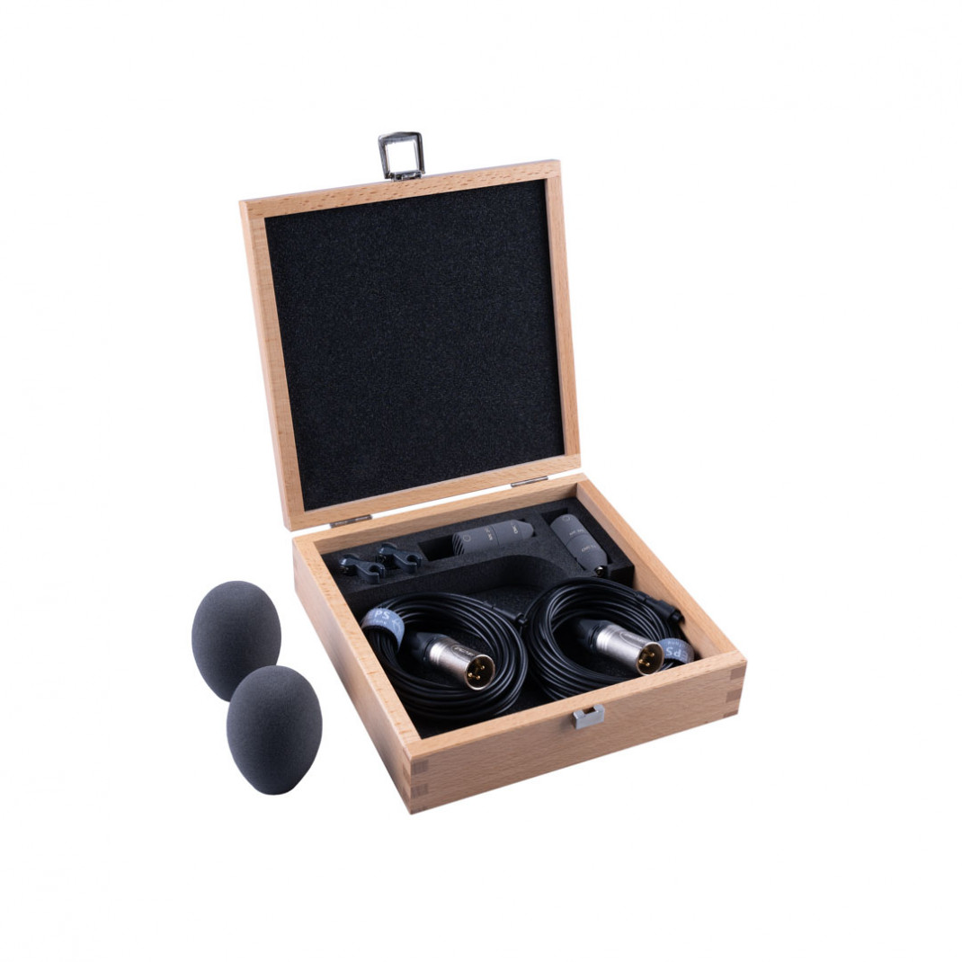 SCHOEPS propose également les best-sellers de la série de microphones modulaires "Colette" en paire à un prix fixe. Chaque kit contient deux microphones, composés de capsules microphoniques MK et d'amplificateurs microphoniques CMC 1 appariés, deux pinces pour pied, et des protections anti-pop B 5 ou B 5 D.Un ensemble stéréo peut être formé avec chaque capsule MK.