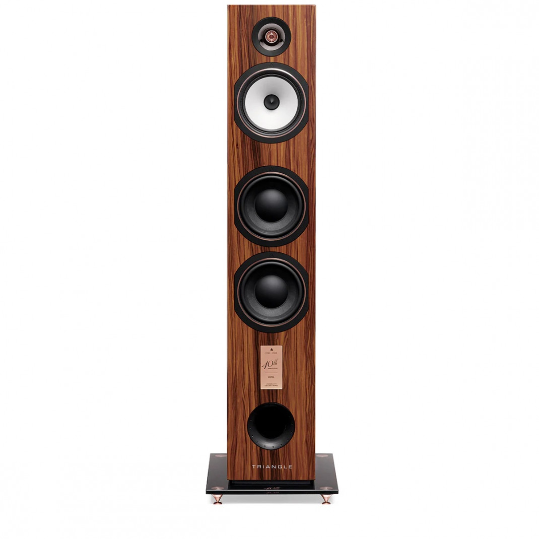 L’enceinte colonne Antal 40th, dévoile un nouveau tweeter à dôme composite en magnésium anodisé or rosé, permettant d’obtenir un rendement élevé pour une distorsion contrôlée. Le magnésium combine deux qualités recherchées, à savoir légèreté et rigidité.