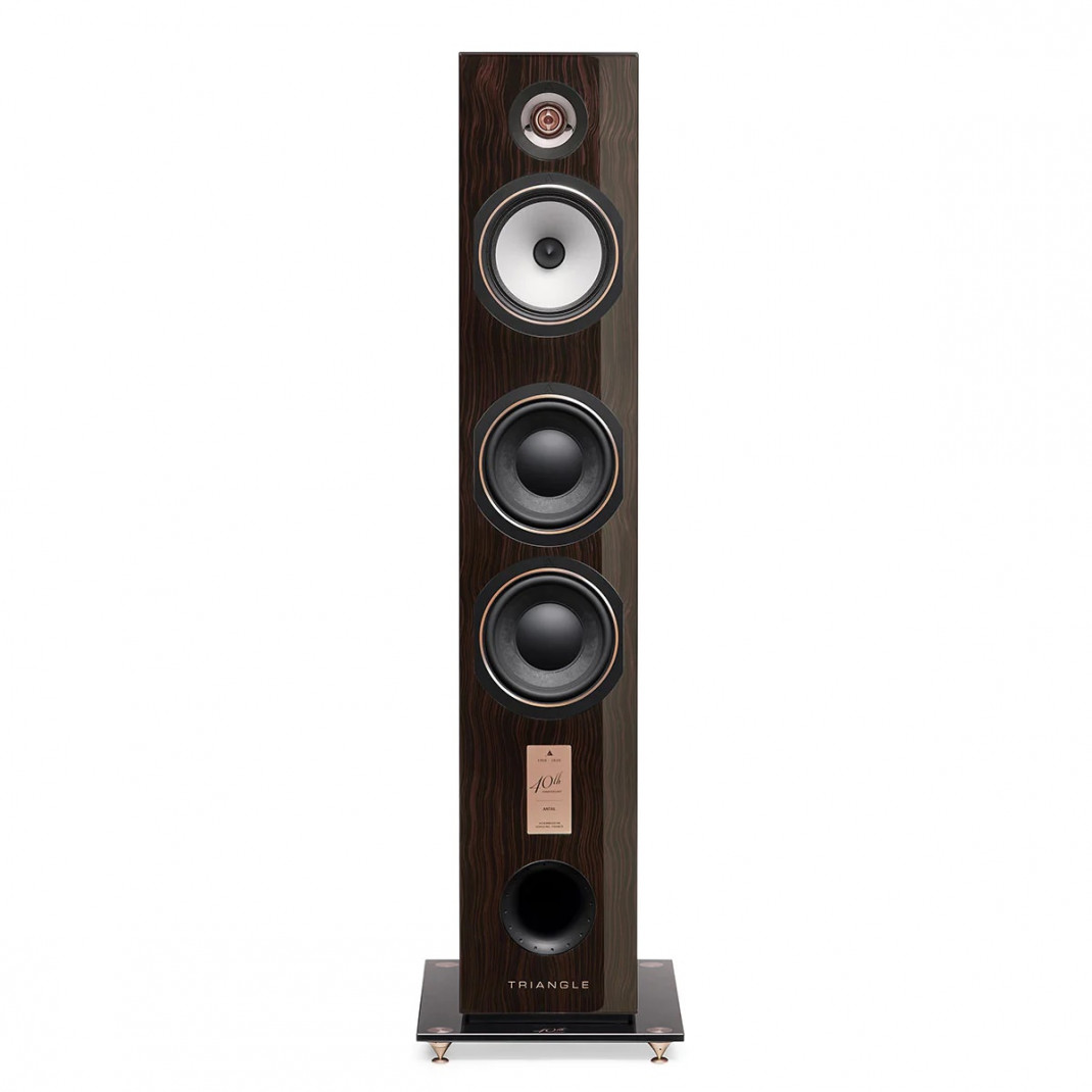 L’enceinte colonne Antal 40th, dévoile un nouveau tweeter à dôme composite en magnésium anodisé or rosé, permettant d’obtenir un rendement élevé pour une distorsion contrôlée. Le magnésium combine deux qualités recherchées, à savoir légèreté et rigidité.