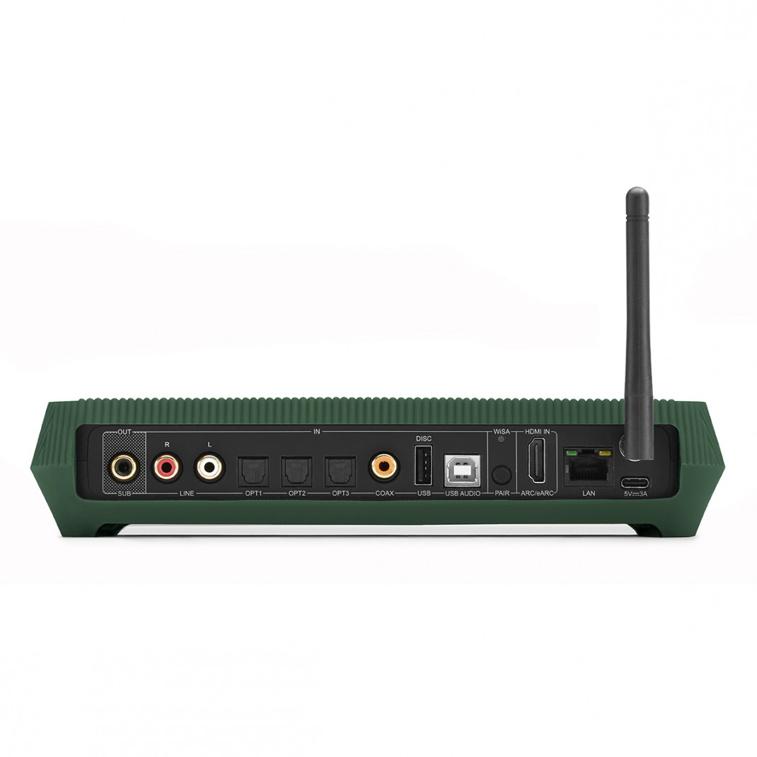 Au cœur du système, le Stéréo Hub 2 centralise toutes vos sources audio avec une connectique complète : HDMI ARC, optique, coaxiale, RCA, USB et Ethernet, ainsi qu’une sortie dédiée pour caisson de basses.