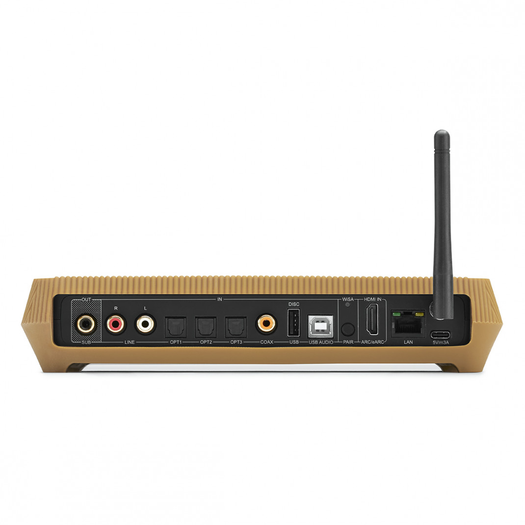 La transmission audio vers les enceintes s’effectue sans fil via la technologie WiSA, garantissant une diffusion haute résolution stable et sans latence perceptible.