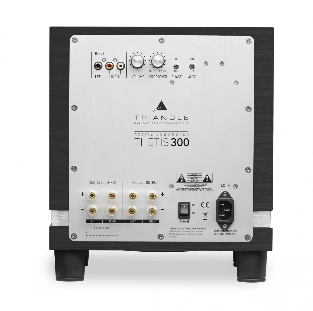 Le caisson de grave Thétis 300 est un élément indispensable pour votre installation Home-cinéma.Polyvalent, il sera également un complément idéal pour votre système stéréo, en accompagnement par exemple d’enceintes au format réduit. Equipé d’un haut-parleur de 20cm à émission vers le sol et d’un amplificateur de 150W, ce subwoofer dans un format compact, permet à votre installation d’étendre considérablement la bande passante dans les basses fréquences. Utilisant un principe de charge type Bass-reflex, il conserve un volume restreint tout en offrant des performances surprenantes.Les caissons de grave Thétis sont dotés de nombreuses entrées, permettant de les associer à tous types d’amplificateurs disponibles sur le marché. Ils incluent une entrée LFE non filtrée, les classiques entrées RCA, et enfin des entrées haut-niveau pour les amplificateurs dépourvus de sortie adaptée.