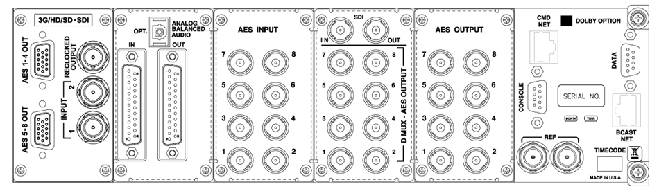 MATERIEL DE DEMO, ETAT NEUF, GARANTIE 1 MOIS - Appareil de hauteur 2U, 16 canaux audio provenant de sources 3G / HD / SD-SDI, Dolby E ou D et AES avec affichage de l'intensité, deux écrans OLED de 4,3 " pour le monitoring des niveau et de la vidéo en entrée. Fourni avec le module d'entrées-sorties WO829024 (3G / HD-SDI + AES)