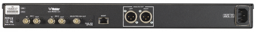 1RU single 7" touchscreen, Dual Input 3G/HD/SD-SDI Audio Monitor with 8 channel metering and 2 x looped outputs and one selected source output.