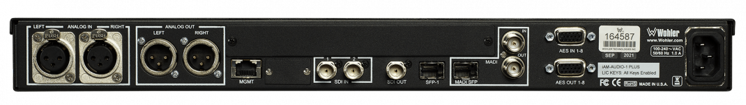 Les caractéristiques standard comprennent le 3G-SDI et une paire d'entrées et de sorties analogiques. Il est possible de mettre à niveau/licencier d'autres formats de signaux et options de traitement, en fonction des besoins, soit au départ, soit après l'achat. Les options pour les signaux supplémentaires incluent DanteTM ou RavennaTM (avec support hitless 2022-7), SMPTE- 2110, SMPTE-2022-7, AES3 et MADI.