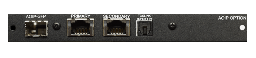 Cette carte matérielle optionnelle permet d'effectuer un monitoring à partir d'une entrée Dante™ de 64 canaux. Elle est livrée avec une clé d'activation et est plug and play. Elle comprend une carte AoIP permettant un RJ-45 primaire et secondaire pour la prise en charge hitless/2022-7 (pour les signaux Dante et 2110-30). Une cage Gigabit SFP permettant des SFP multimodes et monomodes pour les signaux AoIP est incluse.En outre, cette carte optionnelle peut être commandée avec une entrée optique TOSLINK (829171) ou deux entrées analogiques asymétriques (829171-1).