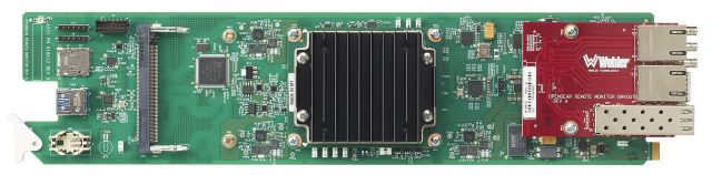 openGear monitor card with remote GUI for use and access, but also compatible with MAVRIC, accepts 2 x 12G-SDI inputs on BNC with 1 selected output