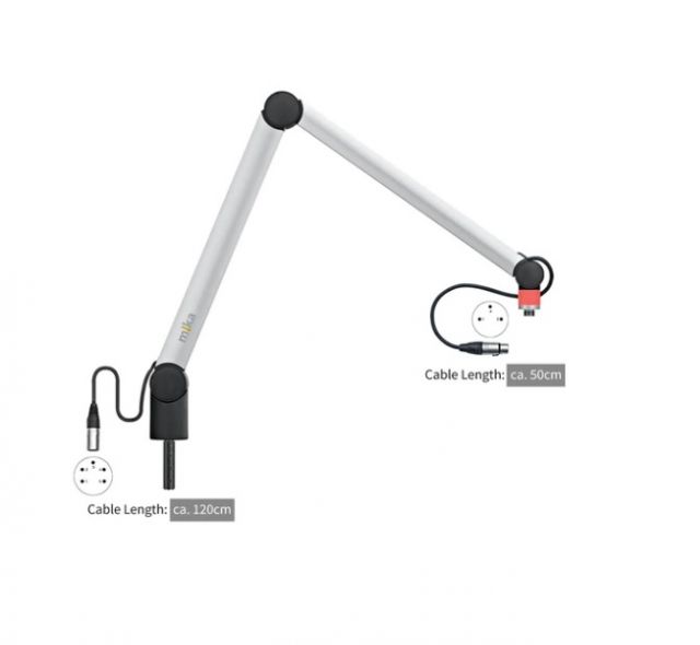 MIKA Microphone Arm Silver 80cm (40x40), built-in 1,2m cable, with OnAir Lamp, with XLR connectors installed