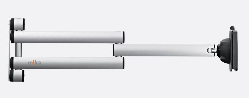 Le bras de moniteur m!ka de taille XL est le choix idéal pour tous ceux qui doivent composer avec de grandes distances entre le point de montage du bras de moniteur et le poste de l'opérateur. En tant que solution longue distance, il comble les espaces jusqu'à 70,5 cm. Ainsi, le m!ka Monitor Arm XL est un bon choix pour équiper de grandes tables ou d'autres grandes installations avec des moniteurs.Utilisez le m!ka Monitor Arm XL pour monter un moniteur pesant jusqu'à 10 kg. Équipé d'un adaptateur QuickFix pour les fixations VESA75 et VESA100, le réglage correct de quelques vis seulement permettra de fixer solidement le moniteur en fonction de son poids et dans n'importe quelle position où vous le tirez.