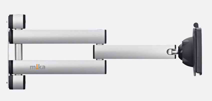 En option, les sets m!ka facilitent la combinaison de plusieurs éléments m!ka. Le set m!ka 4 comprend tous les éléments m!ka dont vous avez besoin pour intégrer deux moniteurs et un microphone dans votre installation. Le m!ka Dual Monitor and Single Mic Set crée les conditions idéales pour fixer facilement vos deux moniteurs via un support VESA75/ VESA100 et QuickFix. Avec le m!ka Set 4, vous pouvez placer deux moniteurs avec un maximum de 40" chacun l'un à côté de l'autre. Le m!ka Mic Arms On Air est équipé de connecteurs XLR-3 et XLR-5 montés. Vous pouvez connecter votre microphone immédiatement sans avoir à ajuster les câbles.Le set m!ka 4 est composé de :