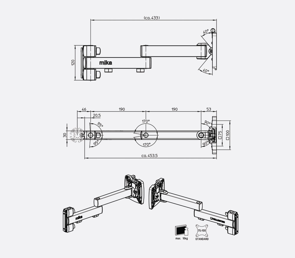 - Aspect plus épuré par rapport aux autres bras de moniteur m!ka.