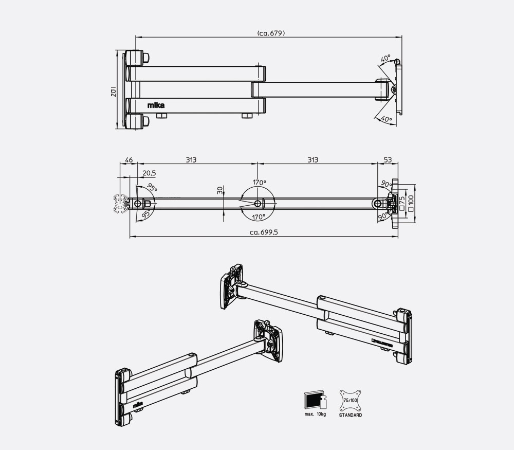- À utiliser avec un poteau m!ka + option de montage pour le poteau.