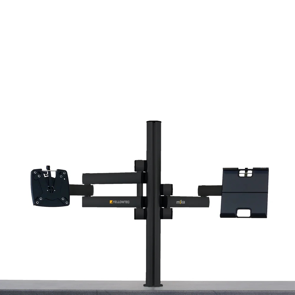 Set m!ka incuding Monitor Arm M (YT3630),m!ka Monitorarm SL (YT3628), m!ka Pad-Dock (YT3275), m!ka System Pole M (YT3643), m!ka System Pole Desktop Mounting Kit (YT3245), black