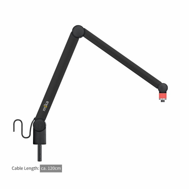 m!ka CamArm aluminium avec indicateur OnAir bicolore, avec extrémité ouverte du câble sans câble à l'extrémité supérieure du bras, noir