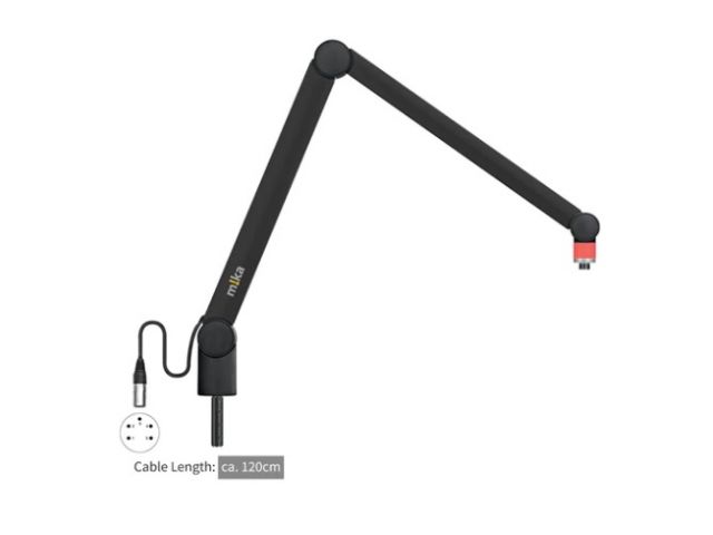 m!ka CamArm noir avec indicateur de marche bicolore avec connecteur XLR installé, noir