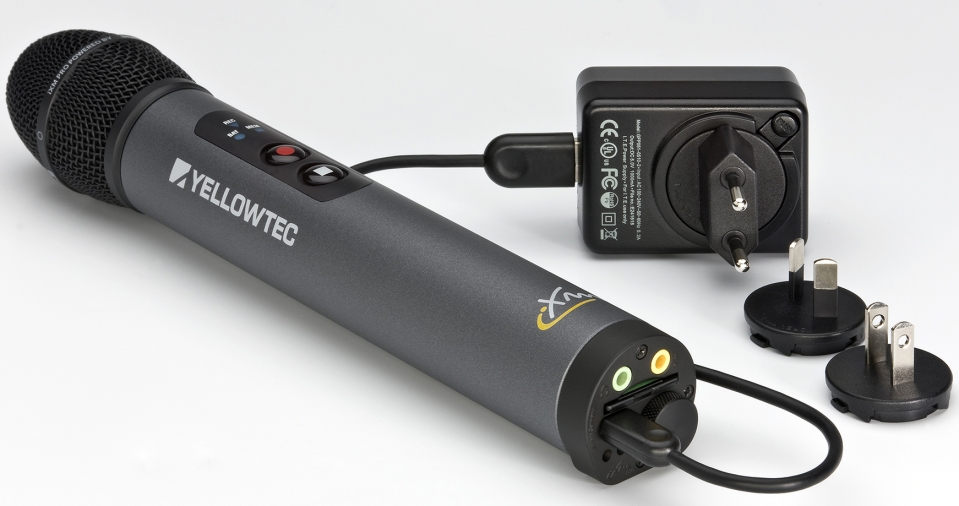 Microphone iXm Pro Reporter, enregistreur intégré, omnicapsule Yellowtec incluse, entrée ligne, sortie casque, mini USB, accumulateur Li-Ion, compartiment pour 3 piles AA. Carte SD WiFi de 8 Go, pochette et bonnette inclus